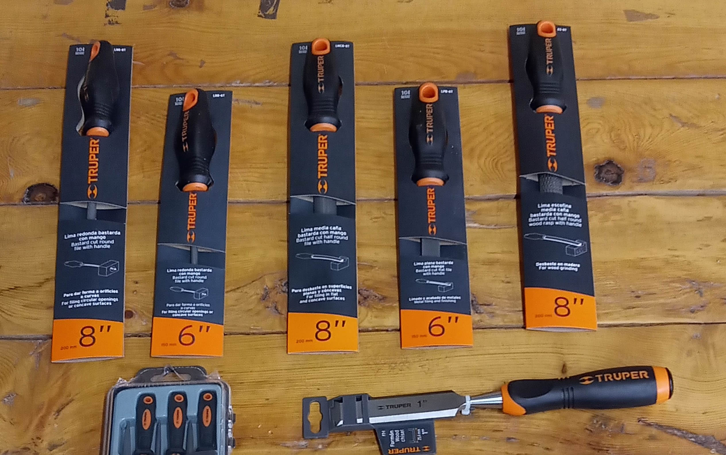 Para dar los acabados perfectos a tus creaciones, contamos con una selección de limas y formones de diferentes formas y tamaños, diseñados para moldear y perfeccionar tus proyectos de carpintería.